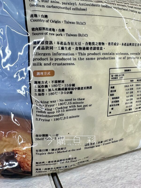 看外包裝很誘人 標榜無骨又整塊豬腿肉切丁,趁折價80的時候買了兩大包, 還很慶幸居然沒有限購1包! 回家吃了才知道為什麼沒有限購 拆封後1大包裡面有3小包,拆了1小包吃,一開始吃覺得調味還行 後來越吃越反胃根本都是在吃粉跟黏著劑 1小包的份量最終分成兩餐才吃完… 剩下2小包跟未拆封的1大包再也不想吃了,二話不說拿去退貨… 這個真的不行,原肉比例過低…外包裝也沒標示原肉比例 留言分享這次的採購經驗, 避免時間久了忘記自己買過又再次踩雷…