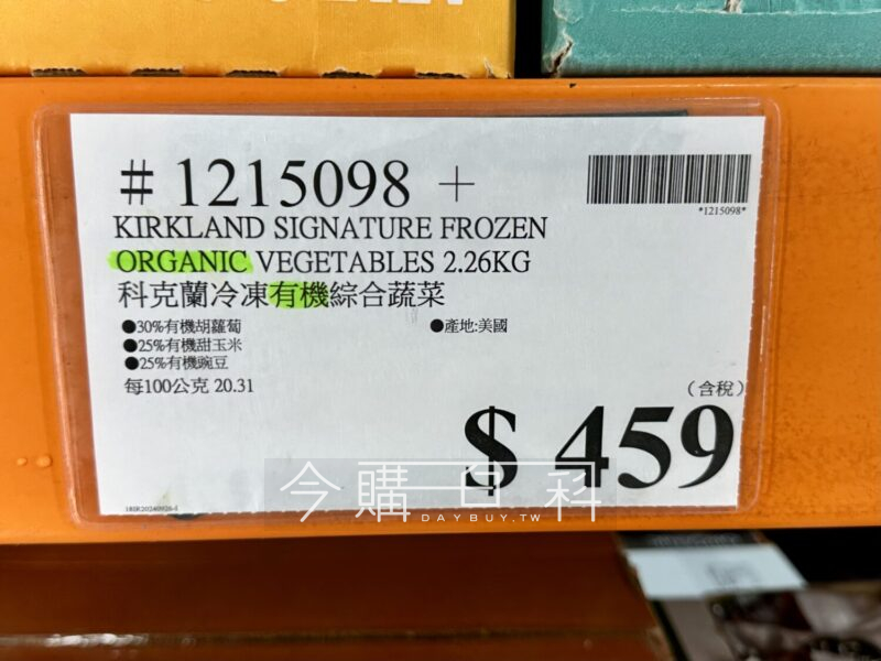 30%有機胡蘿蔔,25%有機甜玉米,25%有機碗豆,20%有機四季豆,產地:美國。