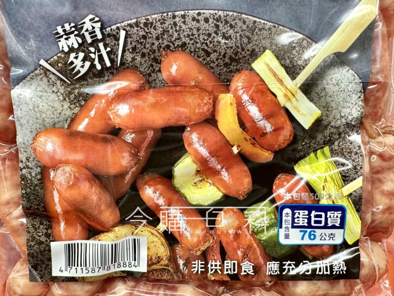 精選豬肉製成的蒜味香腸,清爽不油膩口感,嚼勁十足,非供即食,應充分加熱。