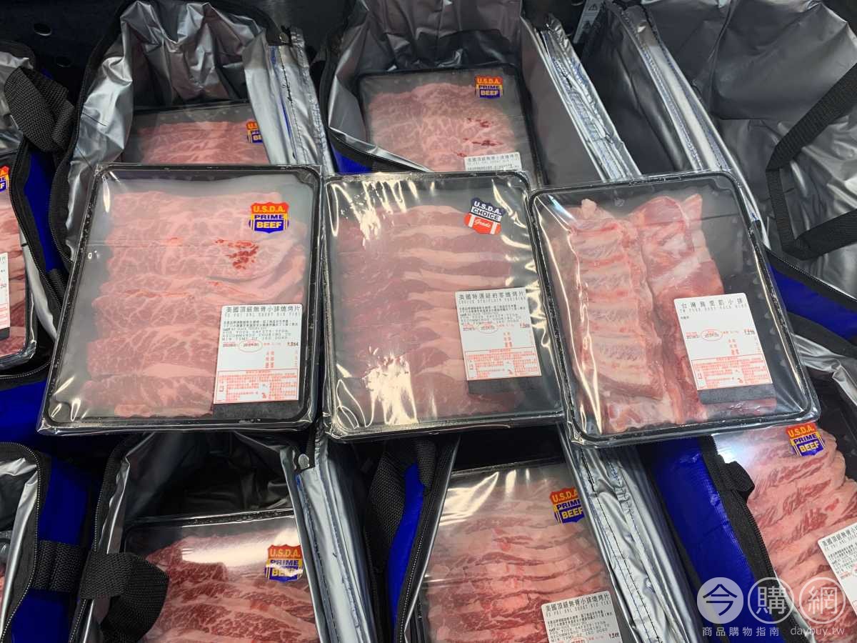 包含三種肉品:台灣豬里肌小排、美國特選紐約客燒烤片、美國頂級無骨小排燒烤片,附保鮮提袋。