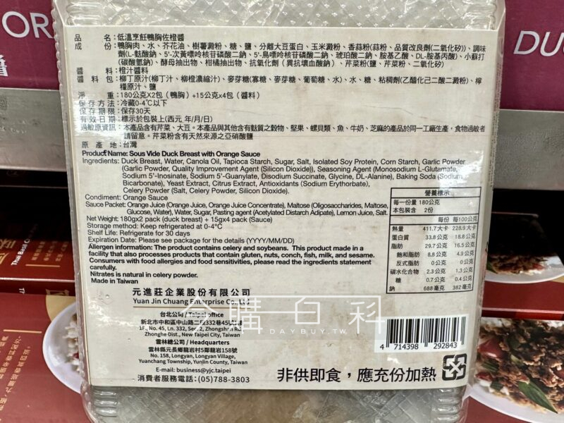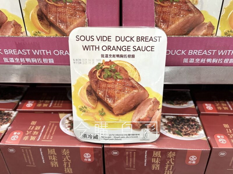 使用台灣飼養的土番鴨,經過真空按摩還有低溫熟成,搭配特調的橙醬,請跟著建議調理方法跟時間。