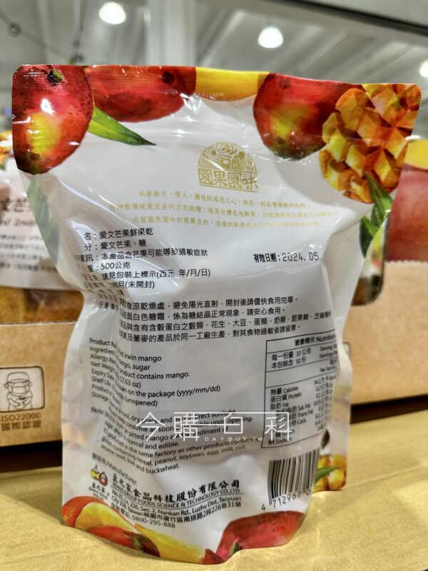 選用台南屏東愛文芒果,新鮮採收農地直送生產,原片裁切低溫烘焙製程,無色素無人工香料無甜味劑無漂白劑無防腐劑,成份天然果香濃郁。