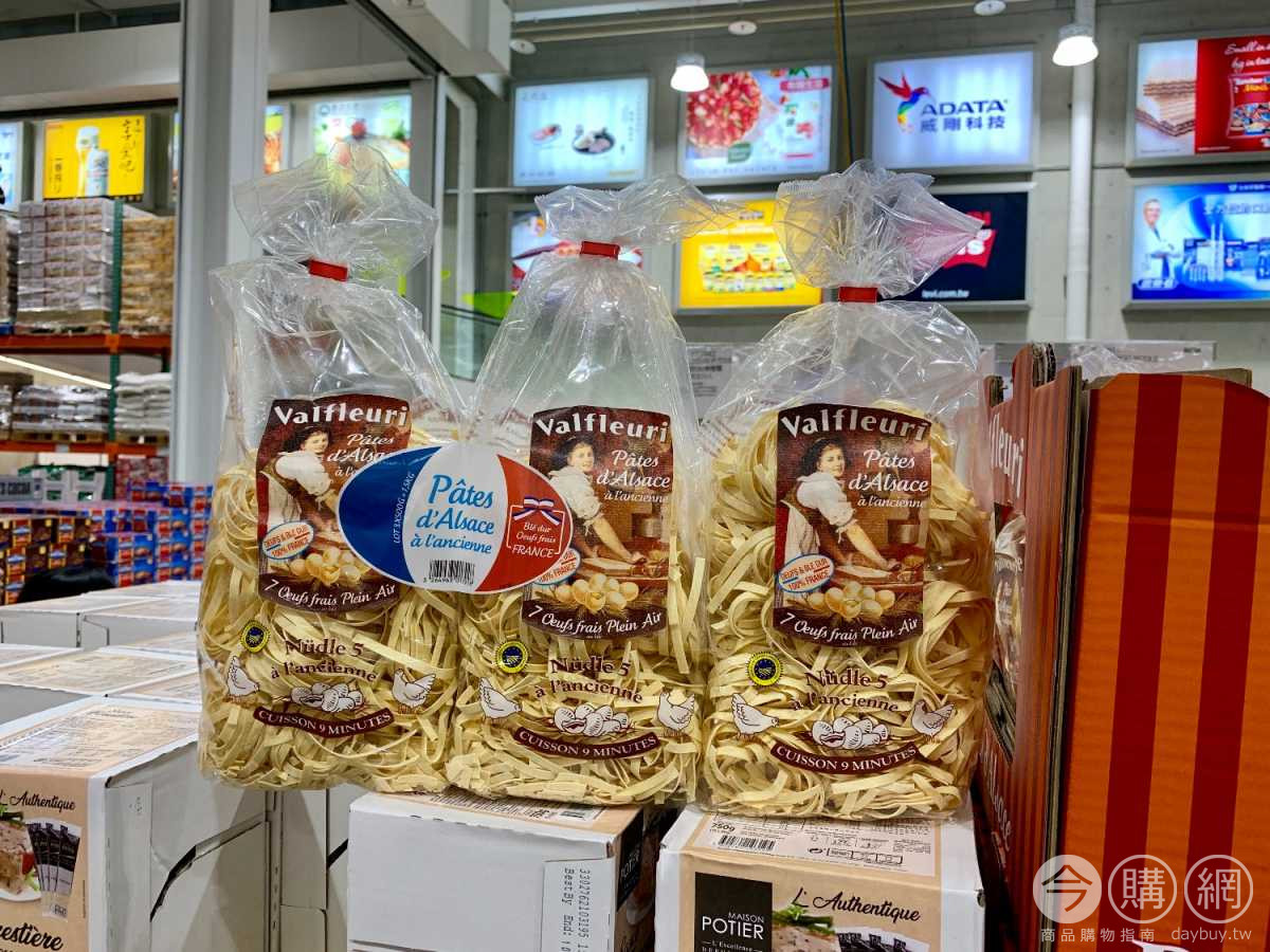 法國原裝進口,遵循阿爾薩斯製麵傳統,選用杜蘭小麥粉與放牧雞蛋,雞蛋比例30%,傳統桿碾層壓製法,將麵條及適量鹽放入滾水,依包裝指示煮熟即可應用於各式料理中。