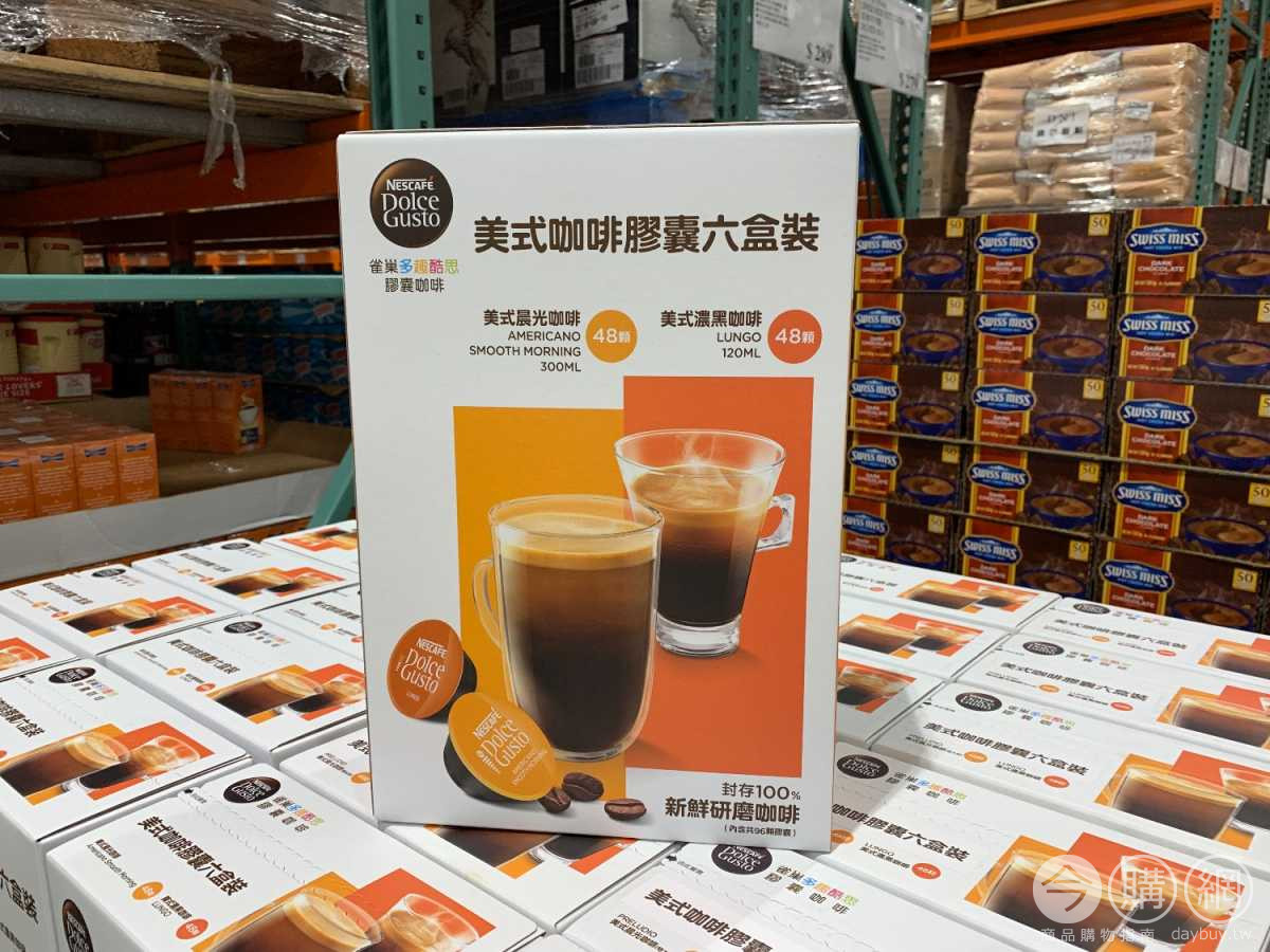 含48顆美式晨光膠囊,美式晨光為阿拉比卡豆混合,羅布斯塔豆高壓研磨封存,每顆膠囊可煮一杯咖啡。含48顆美式濃黑膠囊,美式濃黑為100%阿拉比卡豆高壓研磨封存。