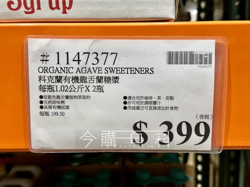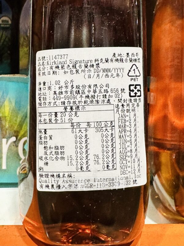 從藍色龍舌蘭植物萃取的天然甜味劑,具備有機認證,適合用於咖啡、茶、甜點,亦可用於調理醬汁,用途廣泛可直接添加於食物。