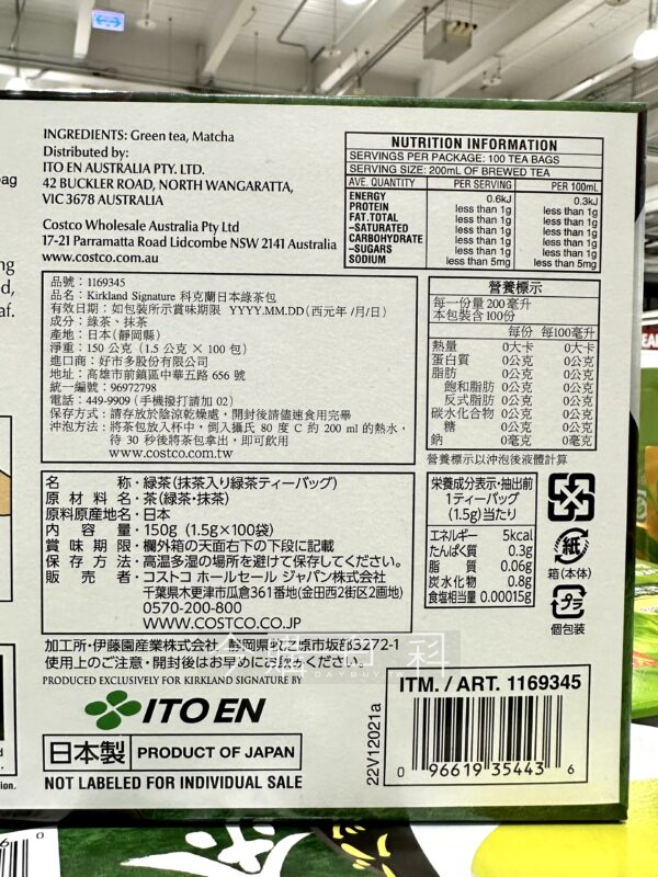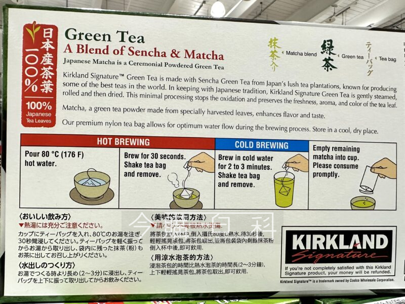 產地:日本靜岡縣,伊藤園代工好市多自有品牌,立體茶包使茶葉能完全舒展,兼有抹茶香味及清潤口感,冷熱水皆可沖泡,冬夏皆宜,使用冷水沖泡時,將茶包靜置沖泡2~3分即可享用。
