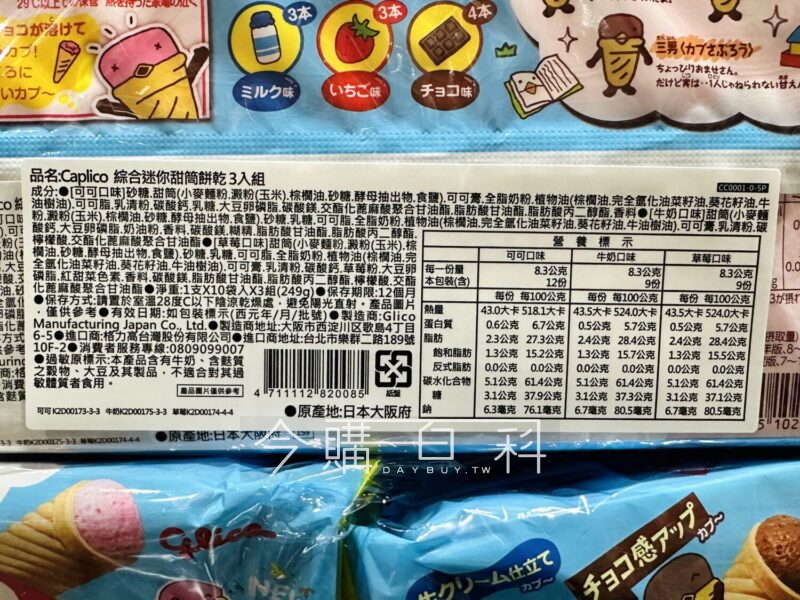 冰淇淋造型餅乾,三種口味,草莓、巧克力、香草,原產地:日本大阪府。
