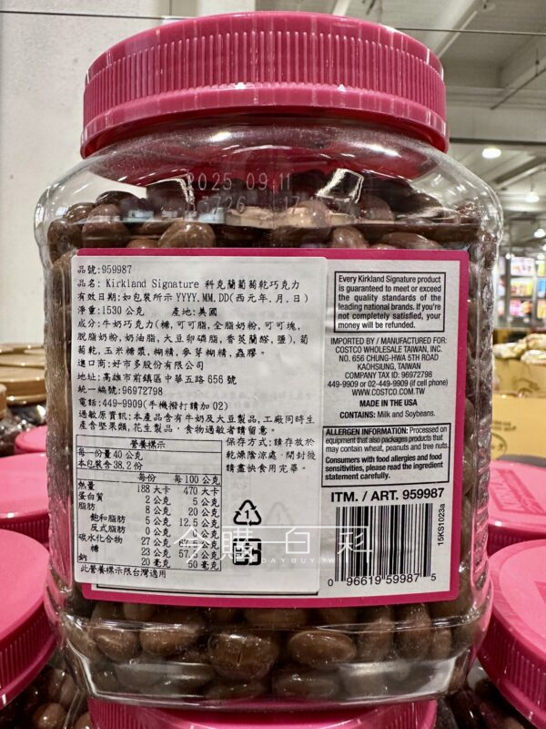 香甜葡萄乾裹著香濃的牛奶巧克力外層,經典組合的美味,產地:美國。