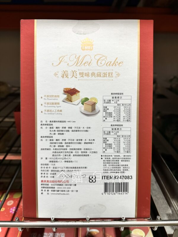 兩口味入,共800公克,蜂蜜一入、檸檬一入,糕體細緻平滑,微濕口感,不添加香料、色素或防腐劑,蜂蜜淡雅芳香,綿密濕潤,檸檬果香清爽,酸甜不膩,可冷藏後食用,更添風味。