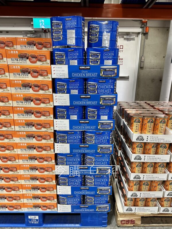 雞胸肉罐頭,亦可製作各式雞肉料理,如:沙拉、義大利麵,產地:美國,好市多自有品牌。