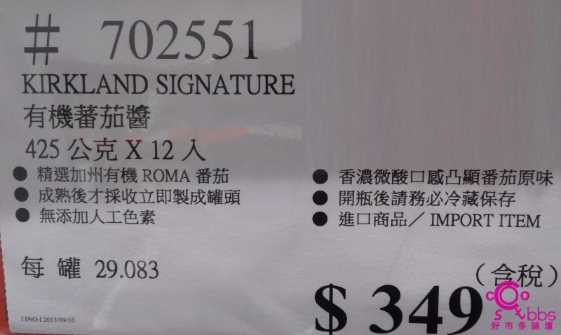 有機番茄醬 KS #702551 https://www.daybuy.tw/costco/36237/
