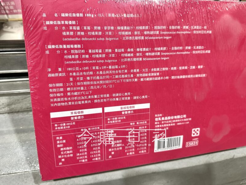 草莓低脂優格和蔓越莓優格各5杯,奶素食可用,不含任何動物膠,含有活性乳酸菌,改變細菌叢生態,幫助維持消化道機能。