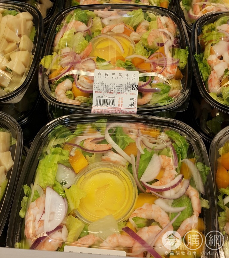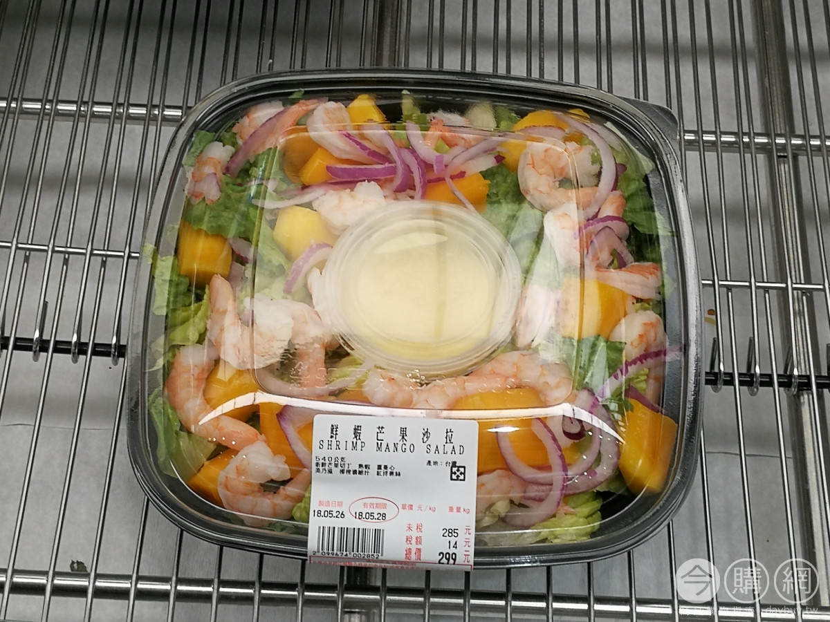 原本想買燻雞沙拉,結果買到鮮蝦芒果沙拉。 價格不低,一餐的份量綽綽有餘,還滿不錯吃的。
