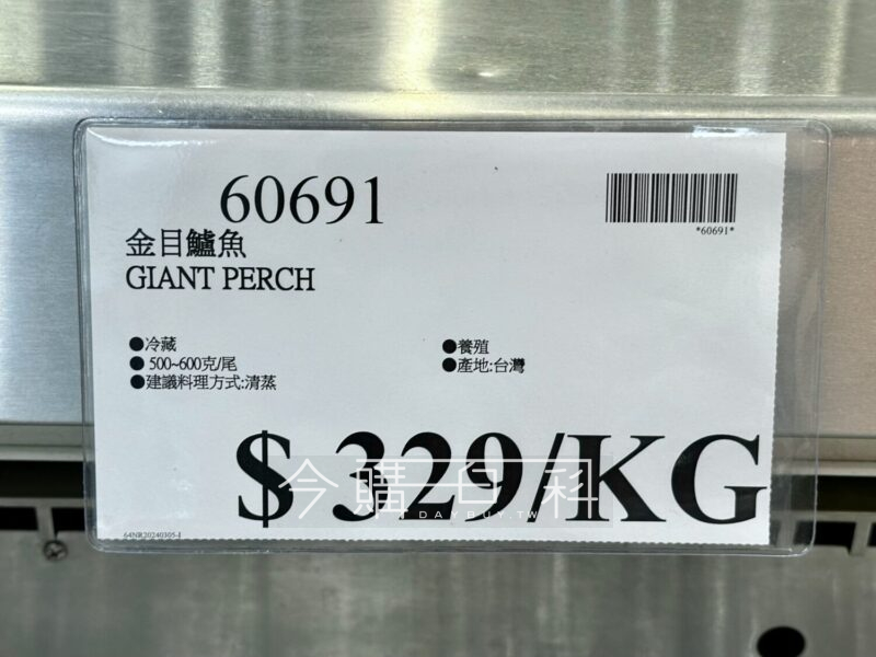 冷藏,養殖,500~600克/尾,產地:台灣,建議料理方式:清蒸。