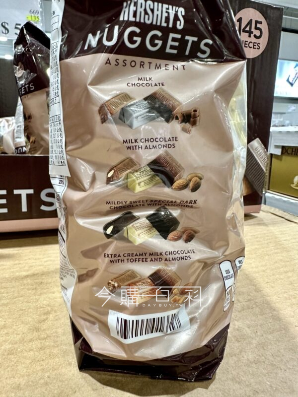 內含四種風味的巧克力:牛奶巧克力、杏仁黑巧克力、太妃杏仁巧克力、杏仁牛奶巧克力。