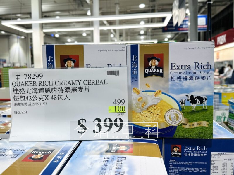 桂格特濃燕麥片 $489-100=389 這款很好喝~ 不會太甜又有口感和飽足感! 已經喝完一箱了! 這幾個禮拜每天早餐都會喝~~~
