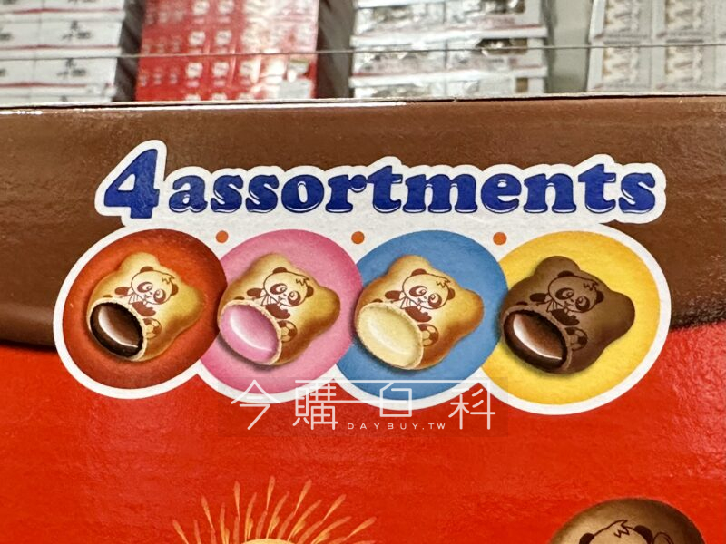 貓熊造型餅乾禮盒共有四種口味:香濃巧克力、酸甜草莓、特濃牛奶與雙巧克力內餡搭配酥脆餅乾,多樣選擇,送禮自用兩相宜。