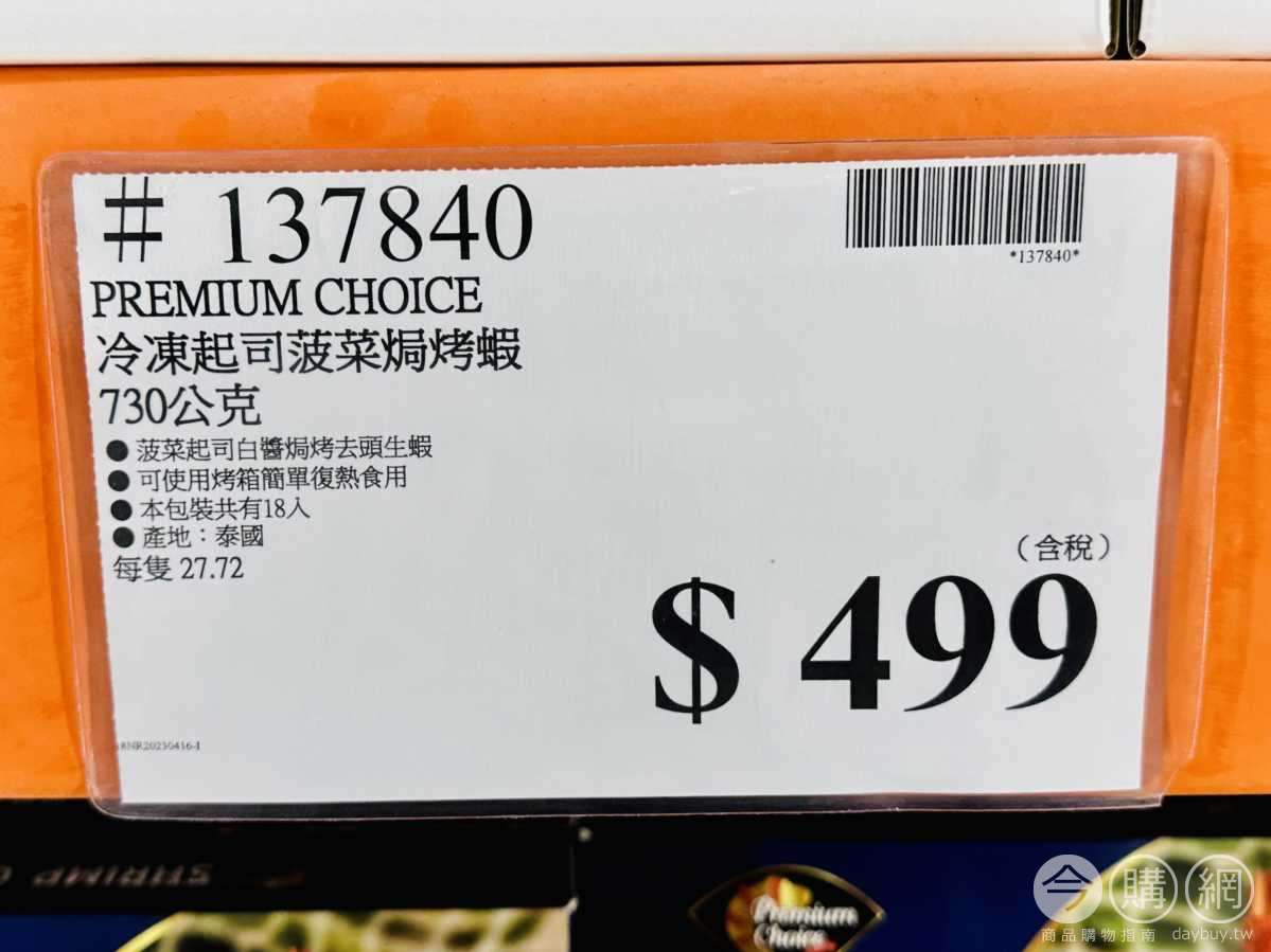 菠菜起司白醬焗烤去頭生蝦,可使用烤箱簡單復熱食用,本包裝共有18入。