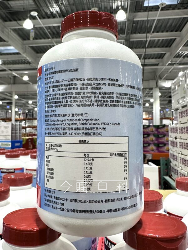 每一份量(2錠),營養補給、健康維持,不添加防腐劑、人工色素,提供葡萄糖胺鹽酸鹽1500MG及甲基硫醯基甲烷1500MG。