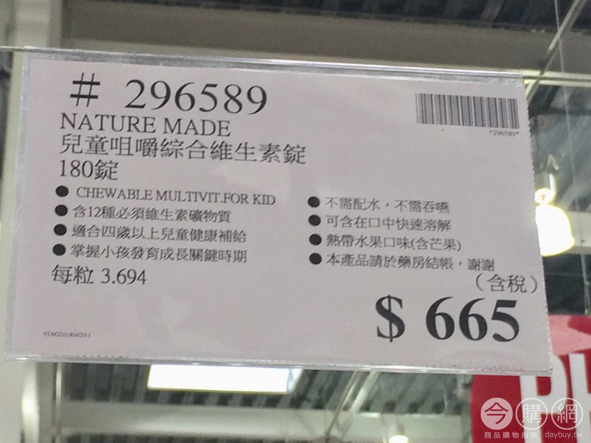 含12種必須維生素礦物質,適合四歲以上兒童健康補給,不需補水,需吞藥,可含在口中快速溶解,熱帶水果口味(含芒果)。