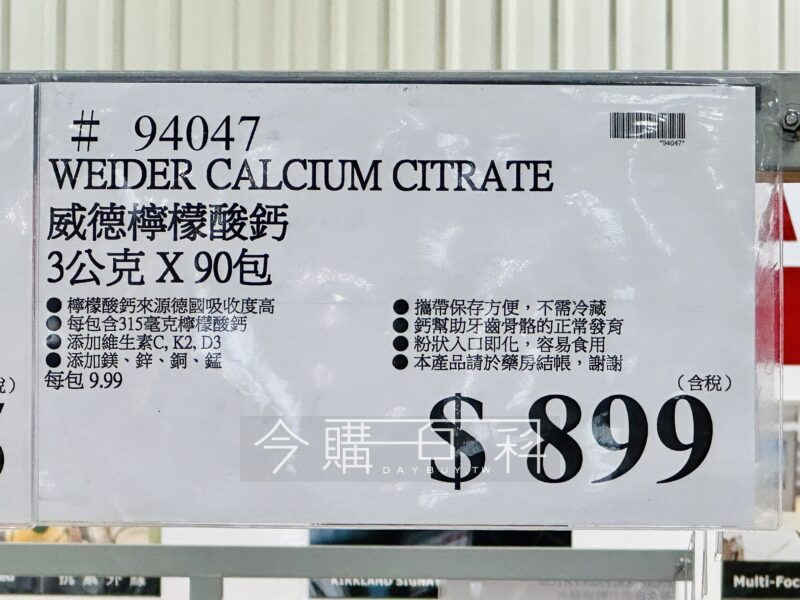 2015/11/27(五)~2015/12/06(日) 威德 檸檬酸鈣 WEIDER #94047 原價: 899 折價: 100 特價: 799