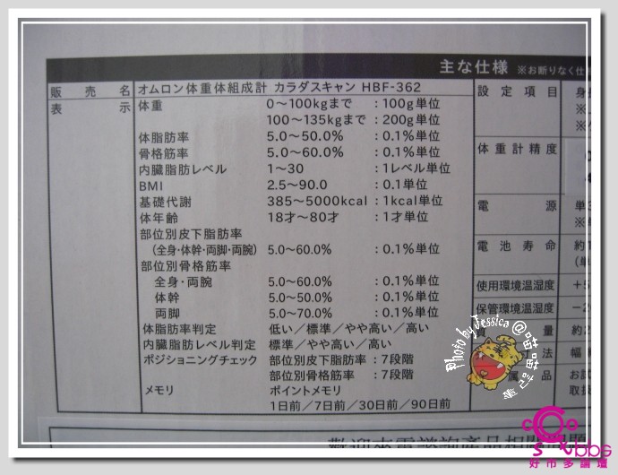 [align=left][align=center]OMRON 歐姆龍專業型體重體脂肪計 HBF-362[/align][/align][align=left][align=center]當初在 HBF-356 跟 HBF-362 之間猶豫不決[/align][/align][align=left][align=center]最後還是決定在精密度[/align][/align][align=left][align=center]HBF-356最小單位200g,HBF-362最小單位為100g[/align][/align][align=left][align=center]對於斤斤計較的我,比較喜歡以100g為單位的[/align][/align][align=left][align=center]舊的TANITA體脂計BF700,賣給同事[/align][/align][align=left][align=center]這樣心裡比較不會有罪惡感[/align][/align][align=left][align=center]肥沒減到,荷包倒是減了不少[/align][/align][align=left][align=center]還有網路上對於HBF-356的評價[/align][/align][align=center]