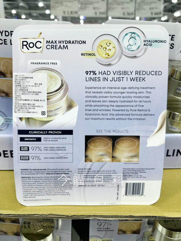 幫助臉部維持高保濕,含A醇及玻尿酸,幫助淡化撫平皺紋,無香料添加。