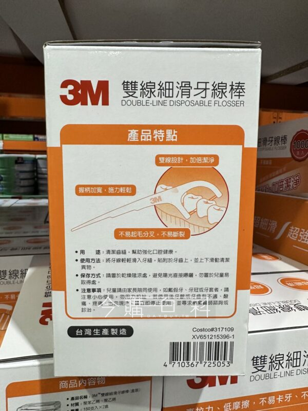 不易斷裂、不易分岔,不易卡住牙縫,較易清潔牙縫死角,台灣GMP廠生產,經SGS檢驗,不含塑化劑,不含螢光劑、雙酚A,盒裝共300支,散裝共700支。