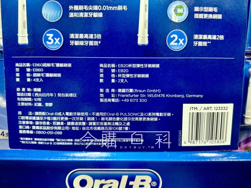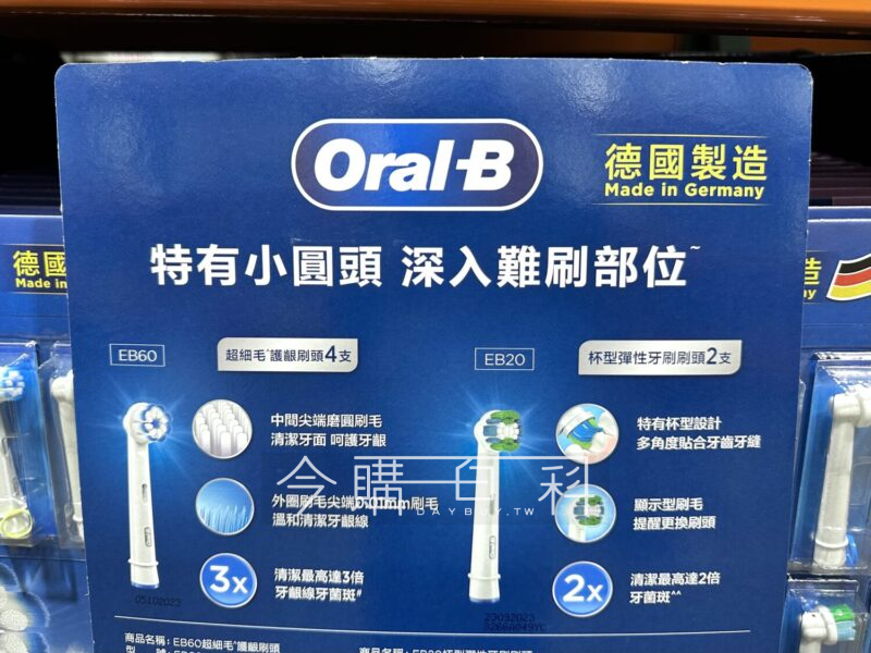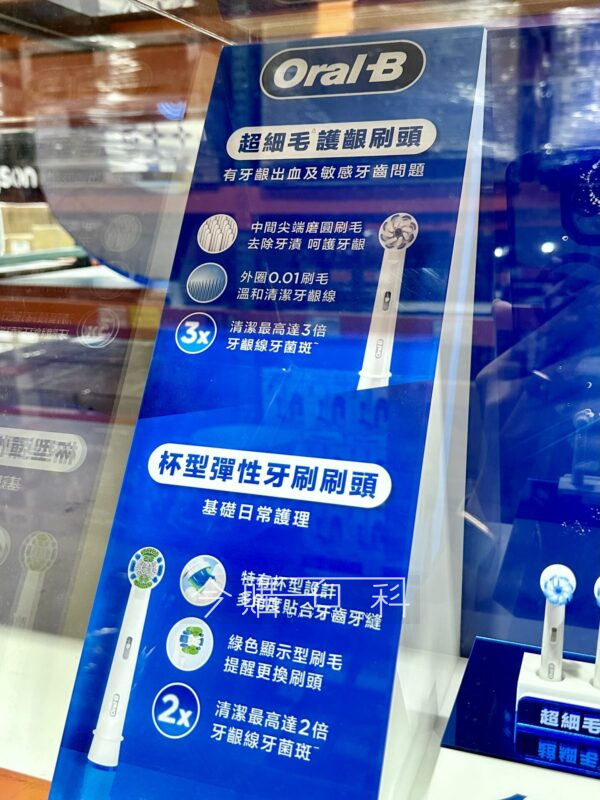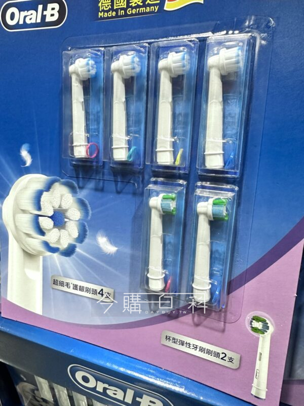 EB20杯型彈性刷頭2入、EB60超細護齦刷頭4入,適用所有歐樂B電動牙刷,杯型設計完全包裏牙齒換顯示換刷毛及時提醒更換。