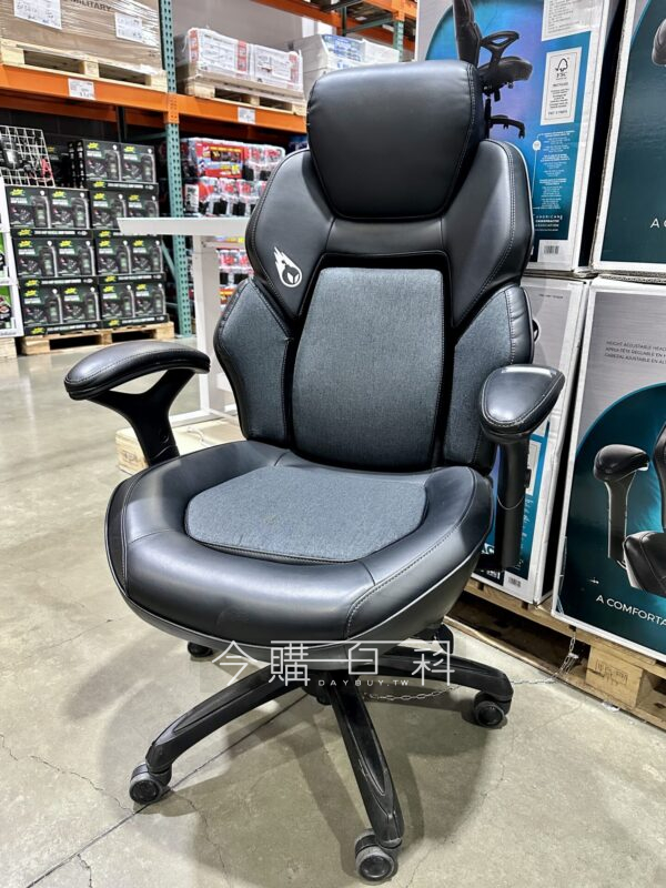 布面與合成皮革複合性材質,可鎖定式後傾設計,扶手可調整高低前後與角度,頭枕可上下調整,最大乘載重量:108公斤,椅背使用獨特腰撐設計。