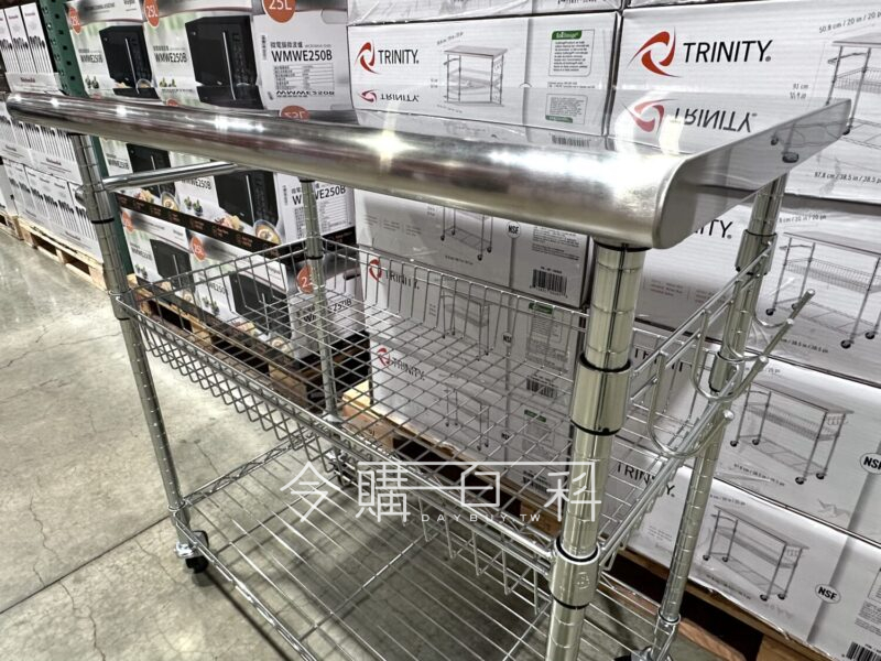 可鎖式輪腳,提供高度穩固,側面掛鉤可掛置廚具或抹布,大容量收納,耐髒汙好清潔。
