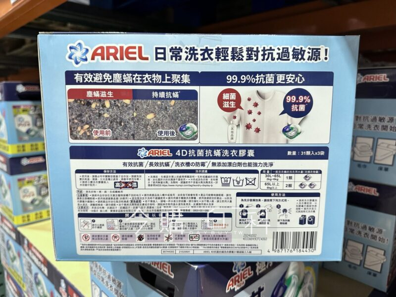 抗菌抗蟎雙重防護,深入纖維,根源潔淨,一般洗衣量僅需用一顆膠囊,99%抗菌,洗後持續抗蟎,添加抗氧化抗臭因子,超濃縮配方用量省。