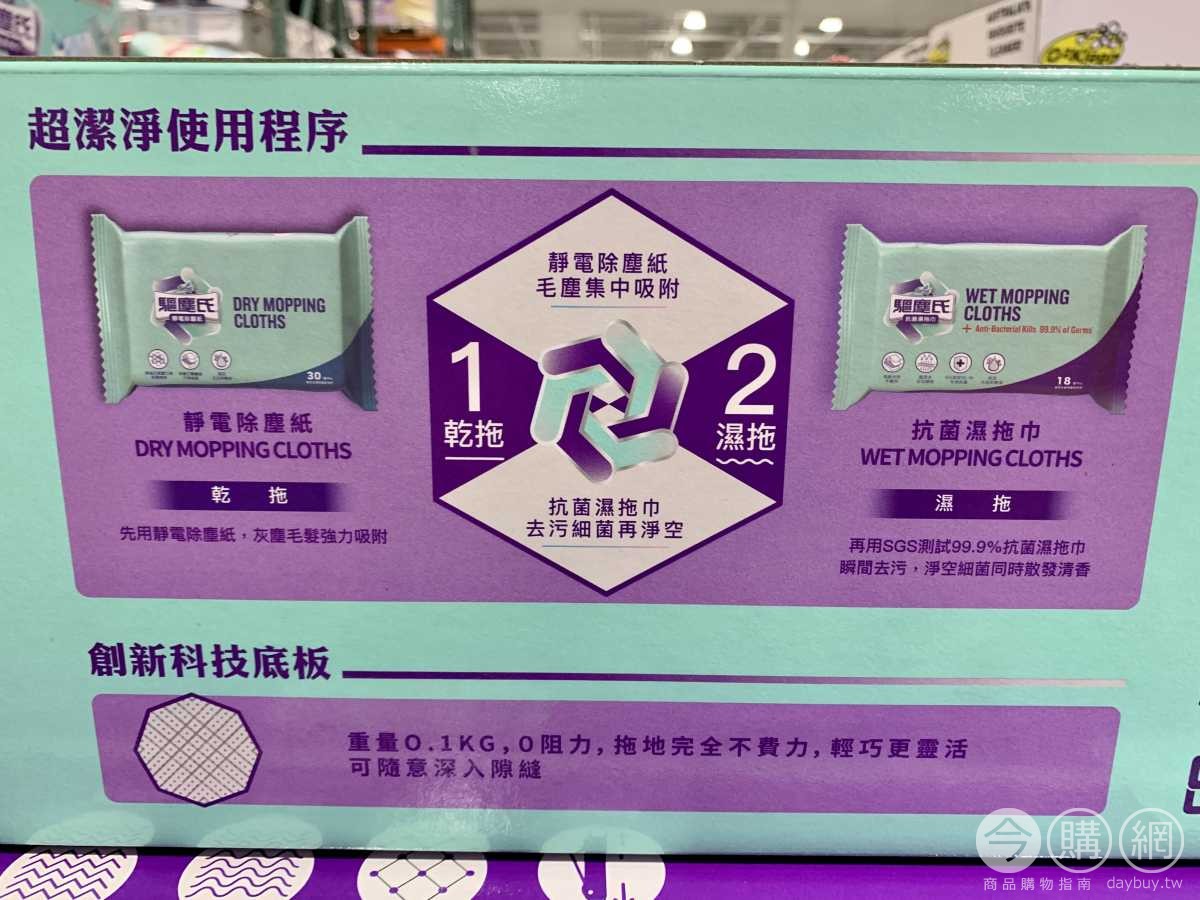 菱格紋底板,加強地面貼合,附靜電除塵紙60張,附抗菌濕拖巾36張,輕薄底板設計,深入縫隙,除塵紙適用清理灰塵毛髮,濕拖巾適用清理汙垢髒汙。