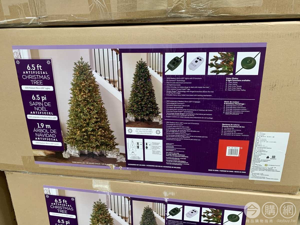 經典簡約造型設計的聖誕樹,組裝簡單,樹枝展開可成型,僅供室內裝飾用途,樹的高度達195公分,使用1500顆變色LED燈,可控制5種燈光效果。