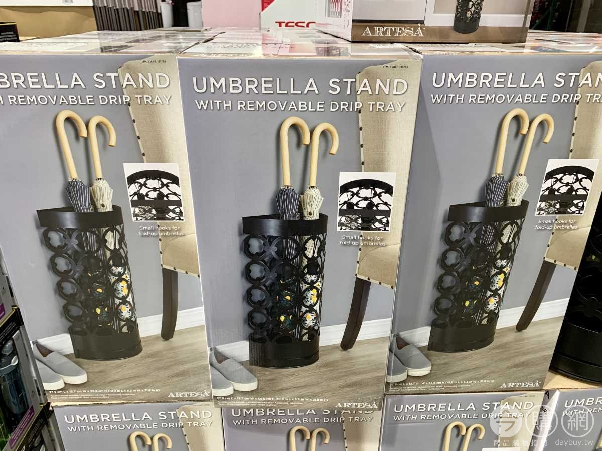 鐵製材質堅固耐用,傘架設計可掛折疊傘,請使用乾軟布清潔,可移動式滴水盤衣便清潔。