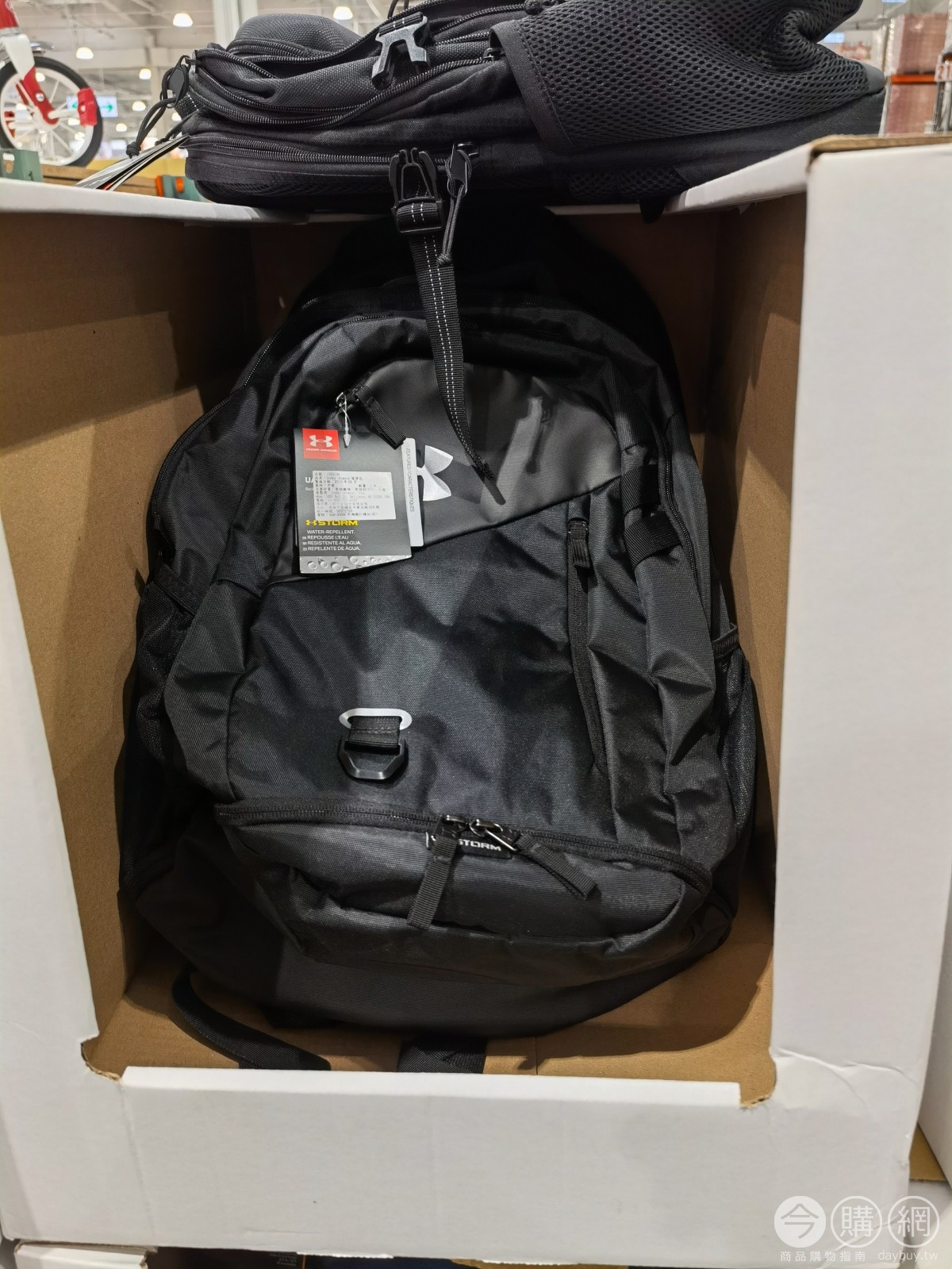 UA STORM塗層具良好耐候性,雙前置防潑水置物袋設計,前側D型環提供額外接合點,底部隔層可放置衣物、鞋履,15吋電腦軟墊夾層,專利肩帶設計提升舒適性。