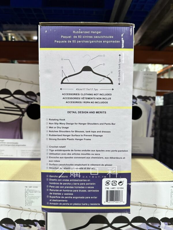 衣架寬度:約45公分,吊掛衣物不易變形,扁平設計有效利用衣櫥空間,橡膠材質可防止衣物滑落,凹槽設計細肩帶可輕鬆吊掛,室內外皆可使用。