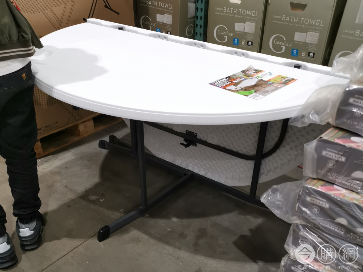 桌面採高密度聚乙烯材質,可摺疊收納節省空間,全部展開可作為圓桌使用,展開單邊可當邊桌使用。