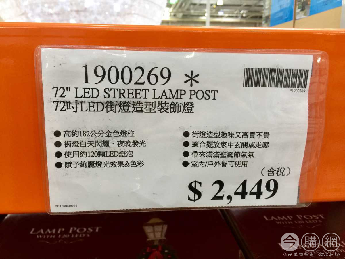 高約182公分金色燈柱,街燈白天閃耀、夜晚發光,使用約120顆LED燈泡,賦予絢麗燈光效果&色彩,街燈造型趣味又高貴不貴,適合擺放家中玄關或走廊,帶來滿滿聖誕節氣氛,室內/戶外皆可使用。