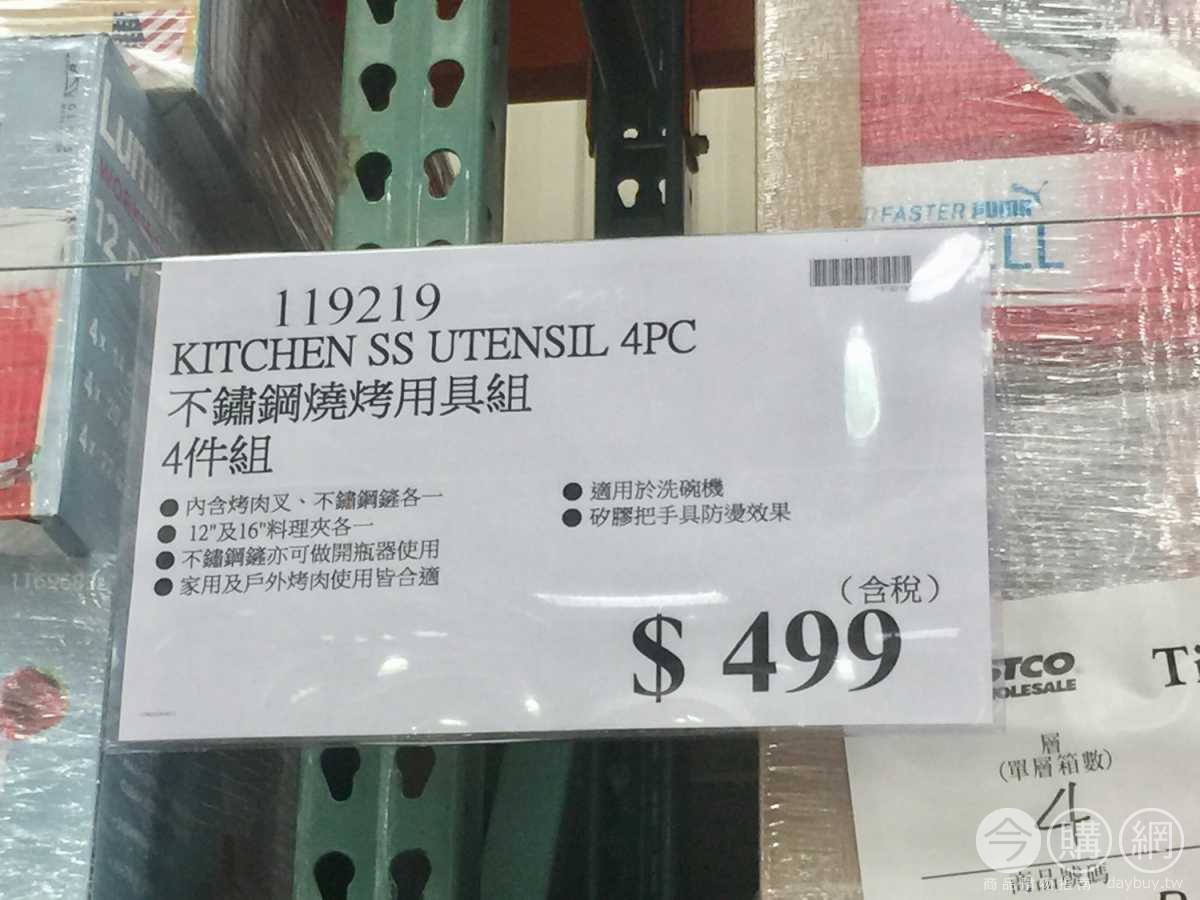 內含烤肉叉、不鏽鋼鏟各一,12吋及16吋料理夾各一,不鏽鋼產亦可以做開瓶器使用,家用及戶外烤肉使用皆合適,適用於洗碗機,矽膠把手具防燙效果。