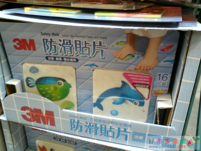 Costco真的是最便宜的~ 而且這組真的很好用,很防滑~ 背膠不易脫落~ 我貼快一年了,只有比較常踩踏的那幾片角角會翹起來~ 只要把趐起來的部份用刀片割除,就不會卡卡的~ 其他都還黏得緊緊的~ 真的很讚~ 我就是有一次抱小朋友洗完澡滑倒~馬上去好市多敗一組回來貼~ 安全又便宜~