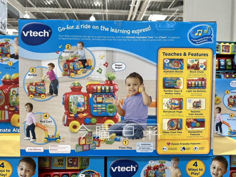 4合1智慧積木學習車,滿足寶寶三歳前成長所需,2種玩樂學習切換模式,按下鋼琴鍵可學習不同事物,13個雙面字母積木及感應槽,積木投入火車可聽到數數聲,還有多首歌曲及有趣音效,適用年齡:12-36個月。