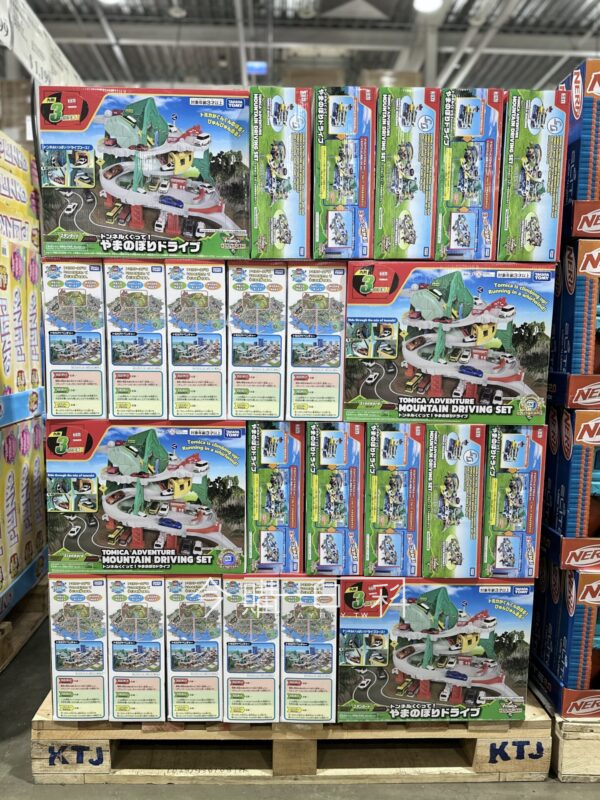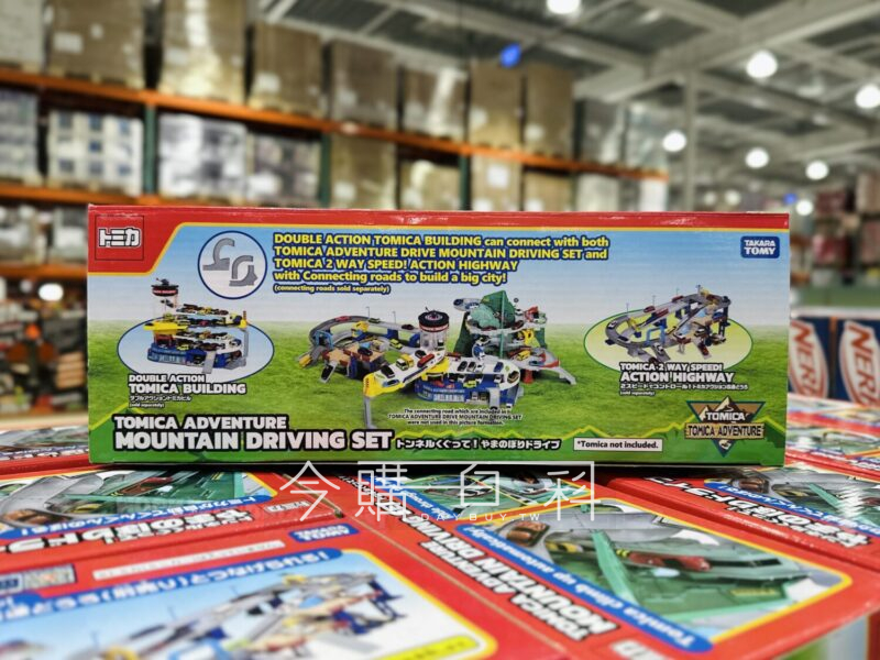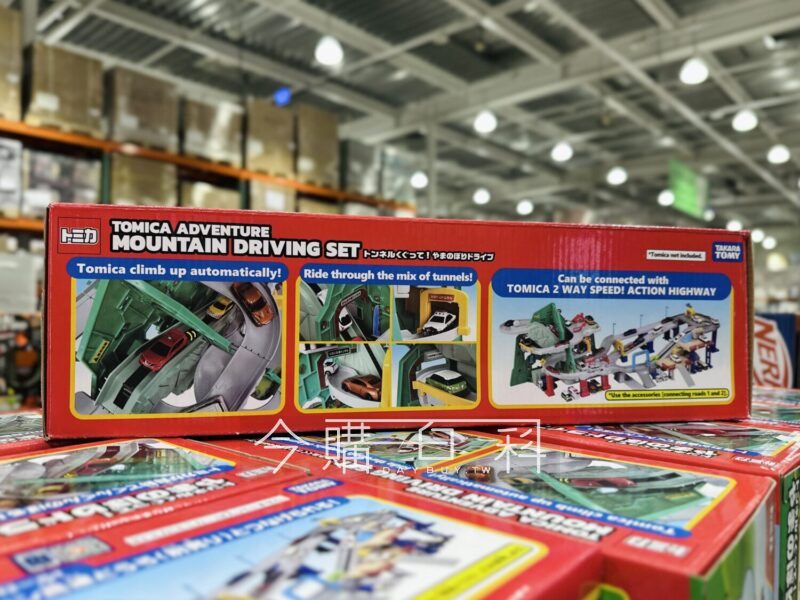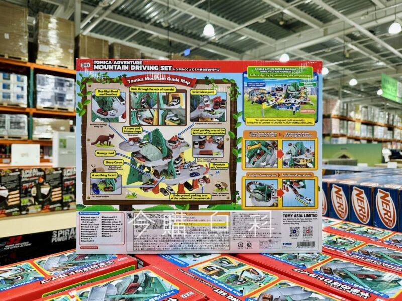 模擬山間蜿蜒的道路,多處S型彎道及山洞,彎道可加快小車經過的速度,小車可從山頂快速衝下山,山下及山間有多處停車位,內附3台TOMICA小車。