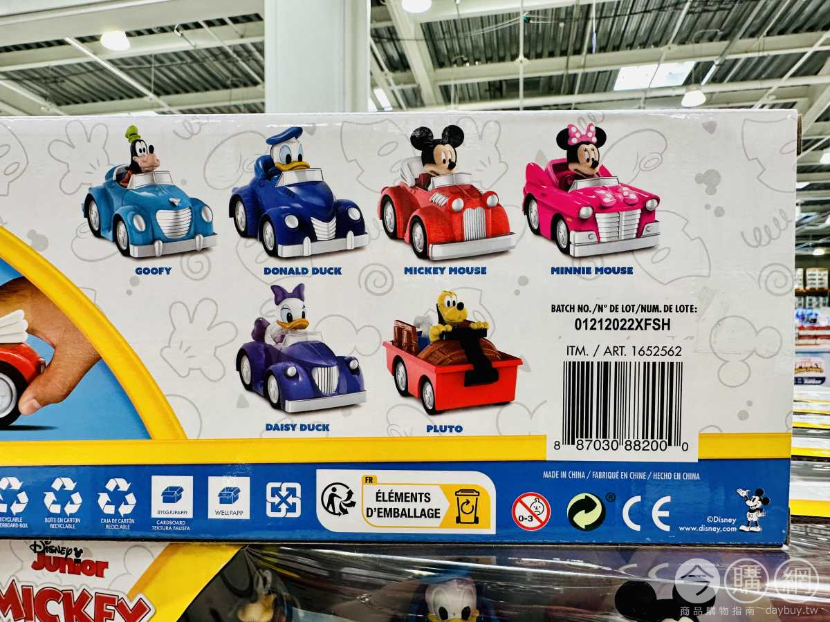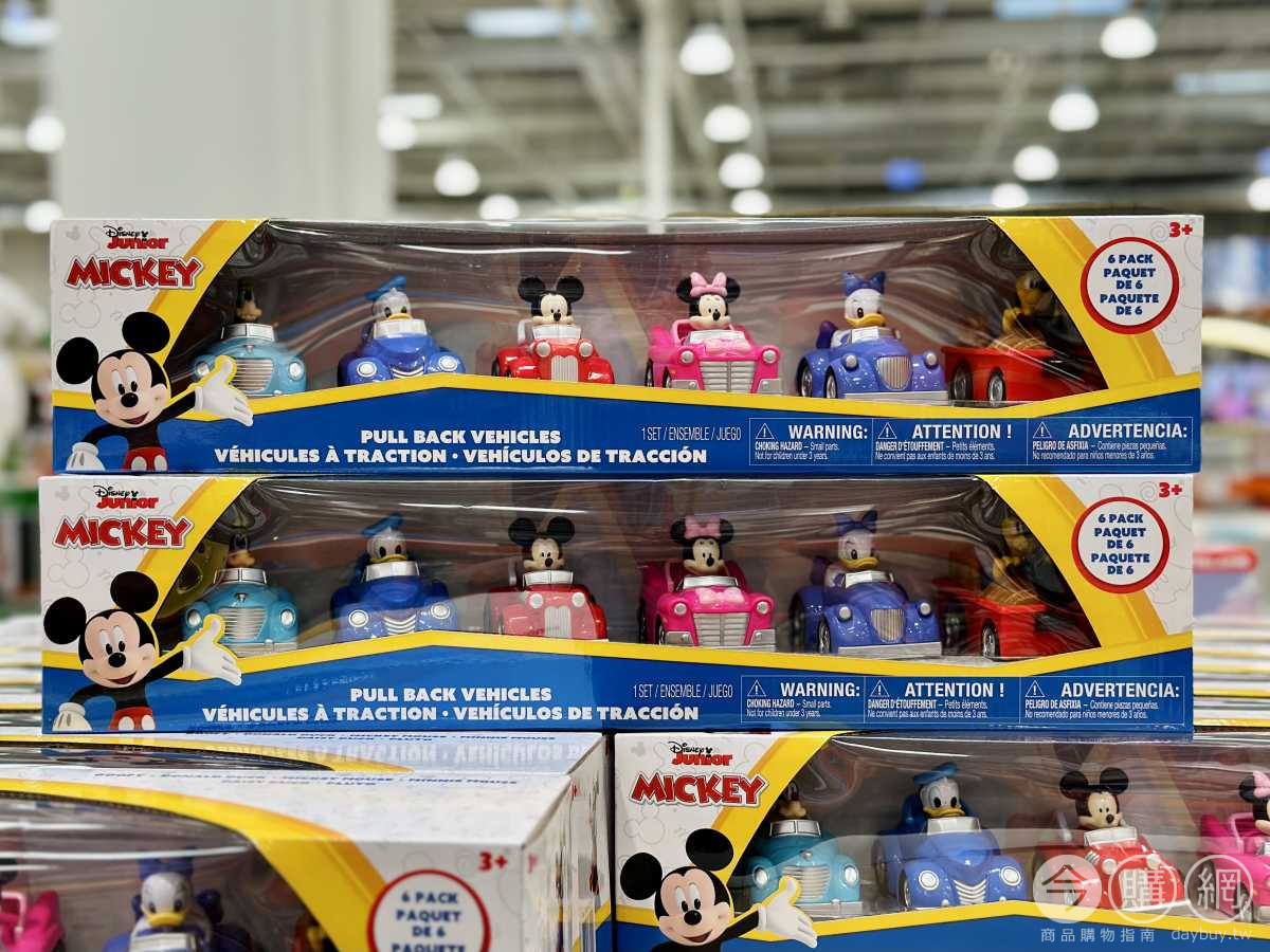 車身長約9.5公分,迪士尼米奇與好友經典角色,米奇、米妮、唐老鴨、高飛、黛西、布魯托,每個角色駕駛不同造型車款,本商品不需電池,適用年齡:三歲以上。