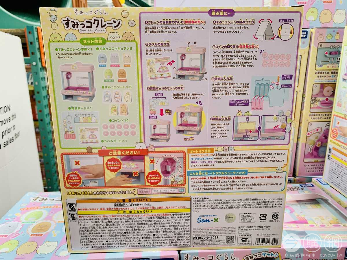 在家就可以玩的夾娃娃機,投入硬幣後即可開始遊戲!可由背面窗口放入角落生物或放入家中其他收藏的玩偶,夾取成功從右下方抽屜取出,可切換兩種玩法模式:自由模式、投幣模式。適用年齡:六歲以上。