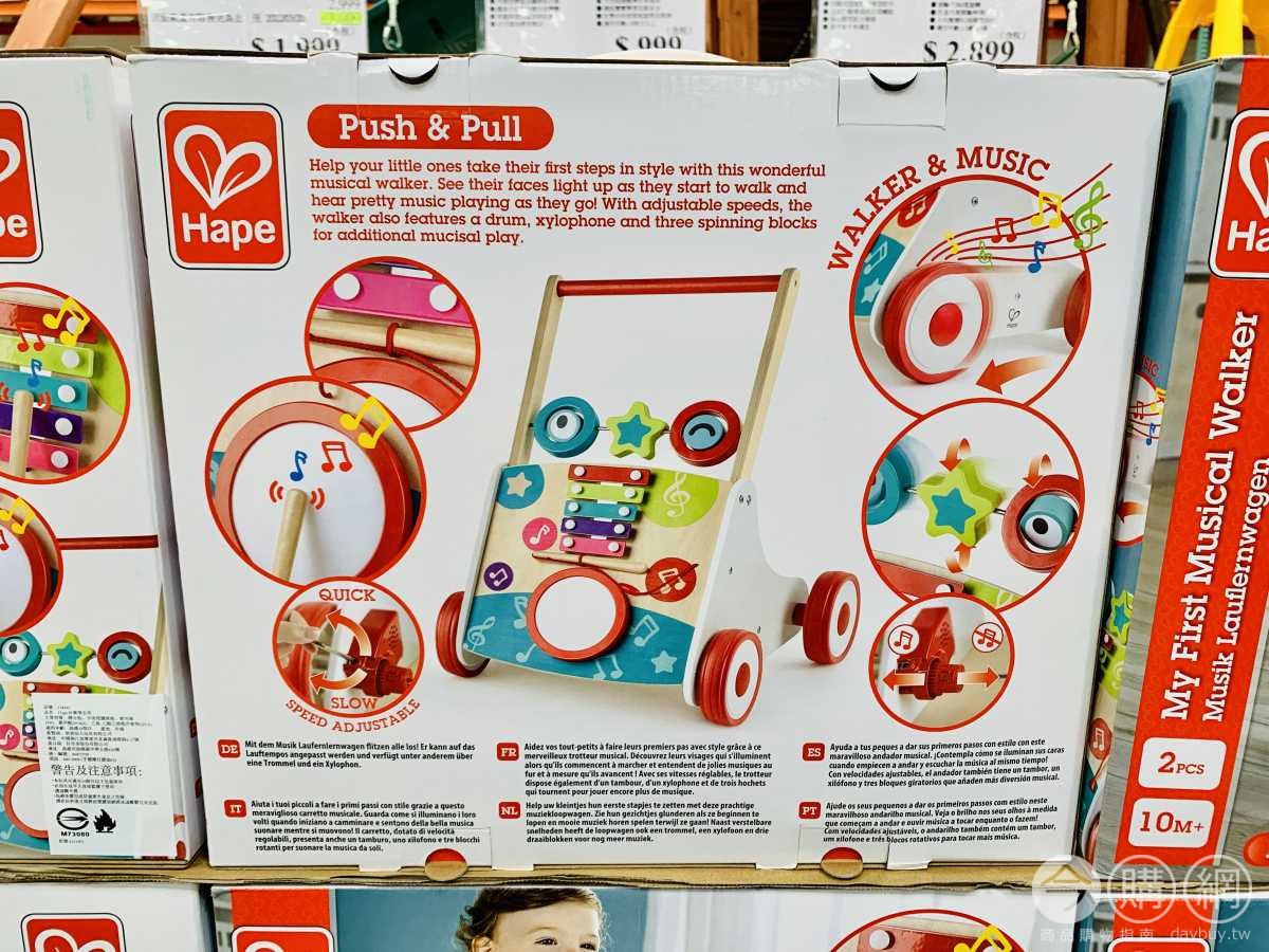 內建音樂盒及鐵琴和小鼓,隨車子走動可發出音樂聲,刺激孩童的感官與反應,亦可調為靜音模式,可分段調整學步車速度,確保寶寶學習走路安全,在學步時期探索旋律及節奏。