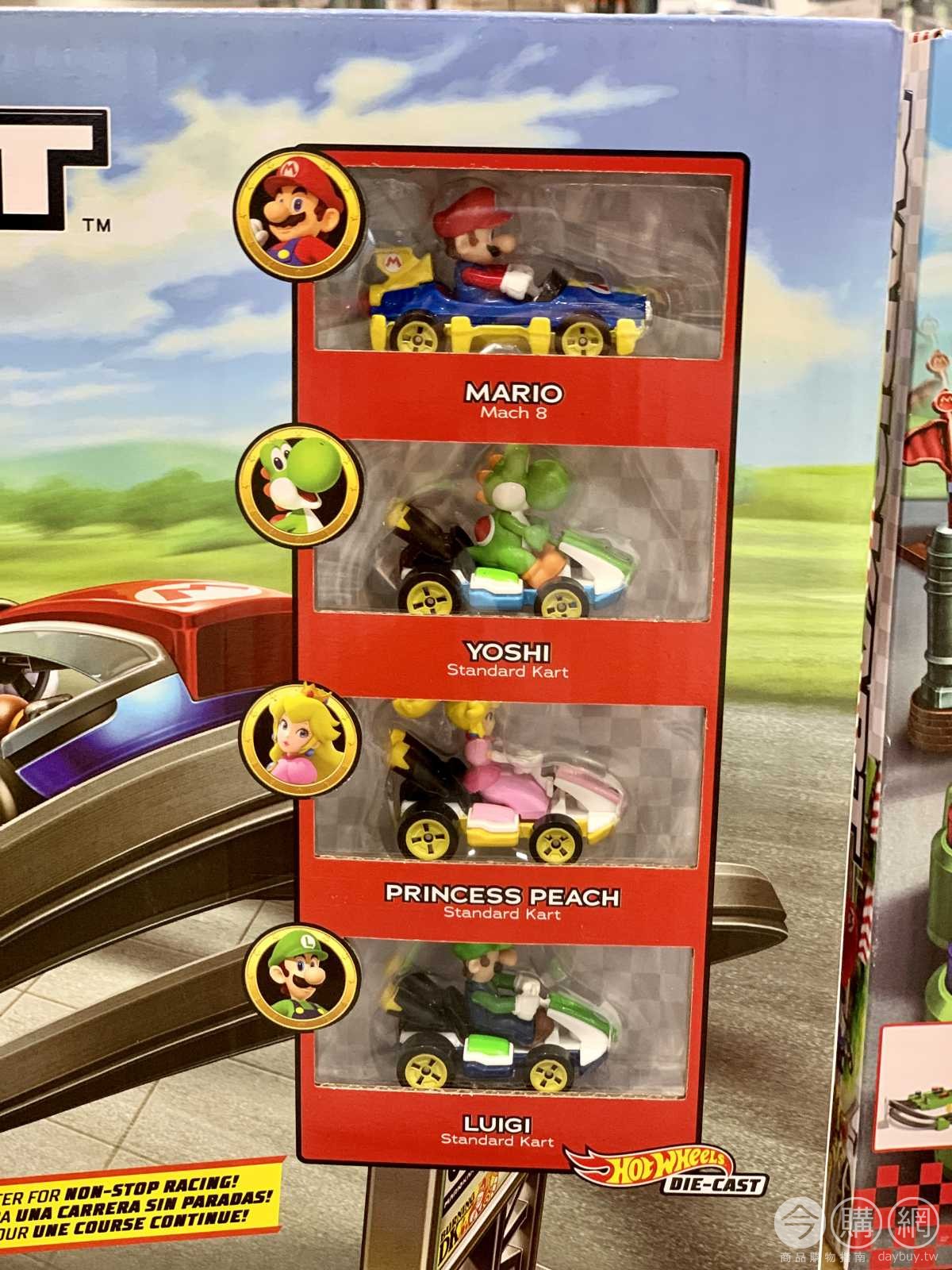 四個馬力歐角色及卡丁車,重現經典遊戲馬力歐賽車,卡丁車衝刺功能,高難度彎道展現賽車特技,可變換軌道或設置障礙,還有多個停車格,適用年齡:五歲以上,通過國家玩具檢驗認證。