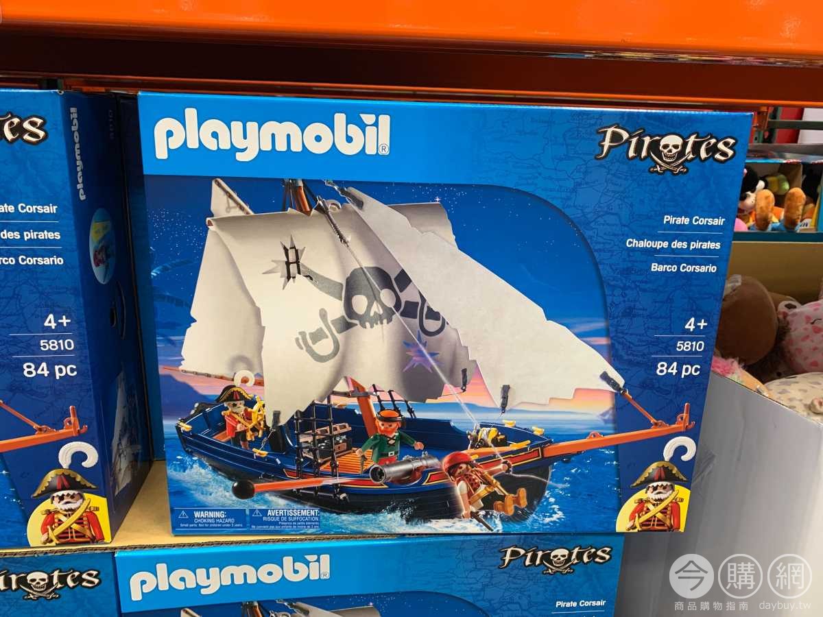 可漂浮的海盜船,適合洗澡或泳池玩耍,可調式繩具和帆船,可裝載大砲射出砲彈飛鏢,含海盜公仔、砲彈、寶藏箱,通過國家玩具檢驗。
