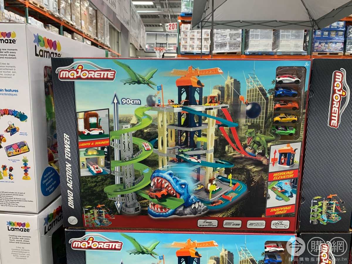 附小車*5及恐龍公仔,有聲光音效,內有可動電梯。
