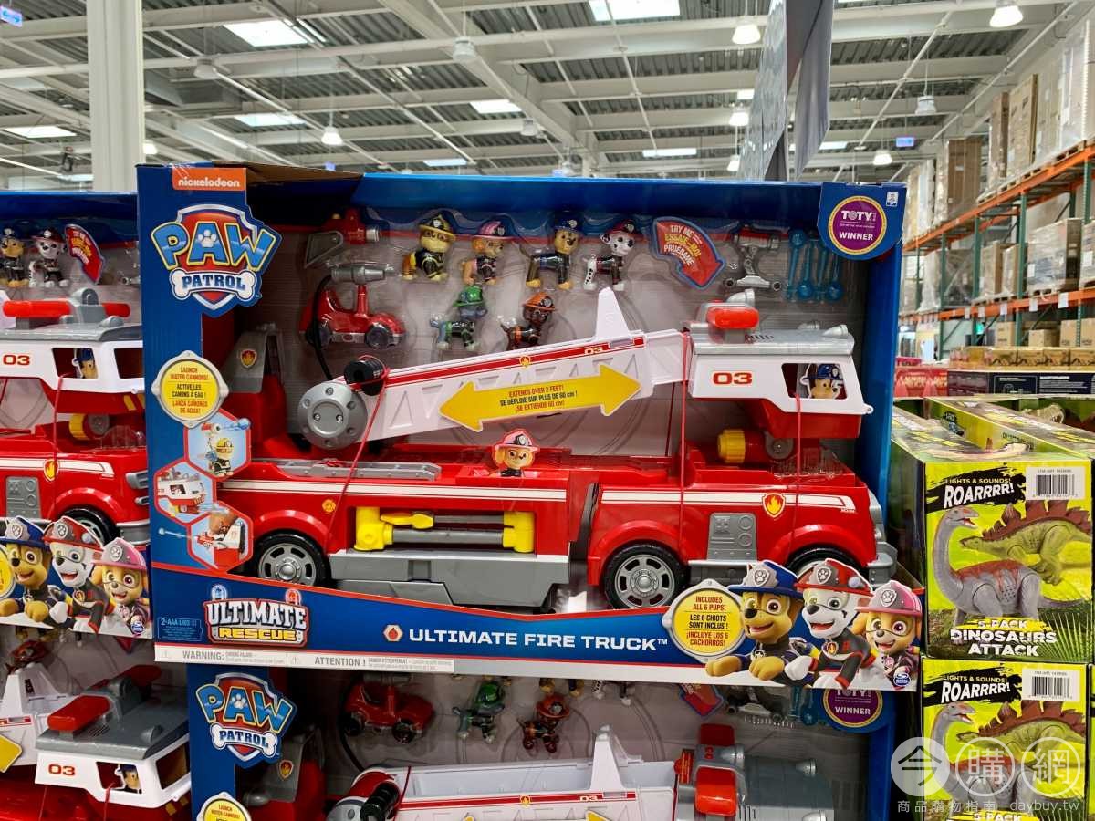 消防車搭配6隻狗狗組合,消防車配備60公分長的可伸縮梯子,迷你消防車及燈光和聲音,車前後兩側配備水砲發射器,伸出60公分長的梯子,推出迷你消防車打開監視室。